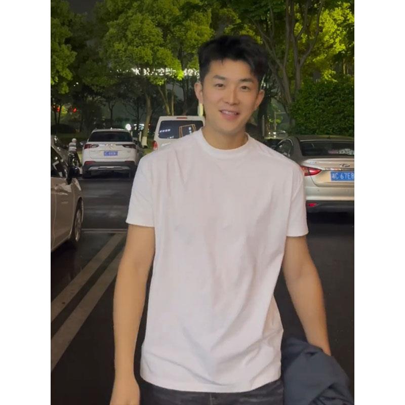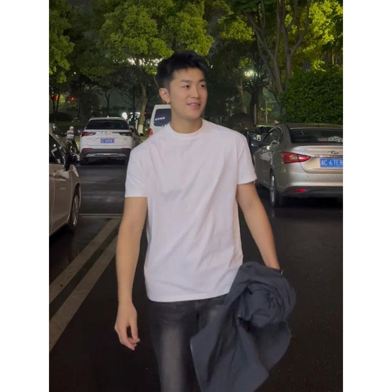 穿搭冰感小领口五分半截袖 t恤男夏季 潮 高街重磅白色正肩短袖 美式