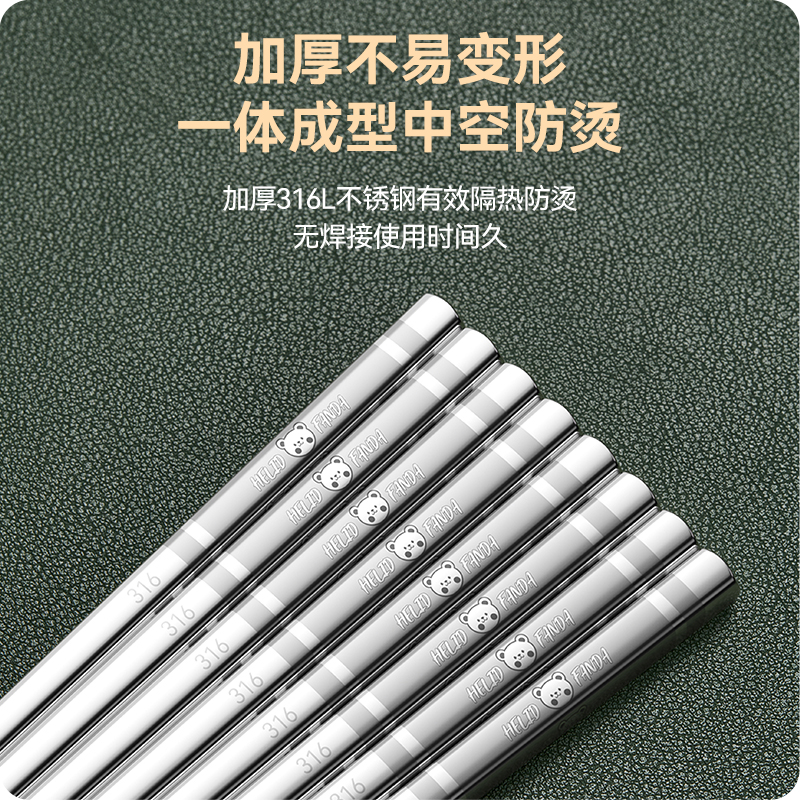 食品级不锈钢筷子316食品级家用防滑防霉304高档套装 防烫耐高温