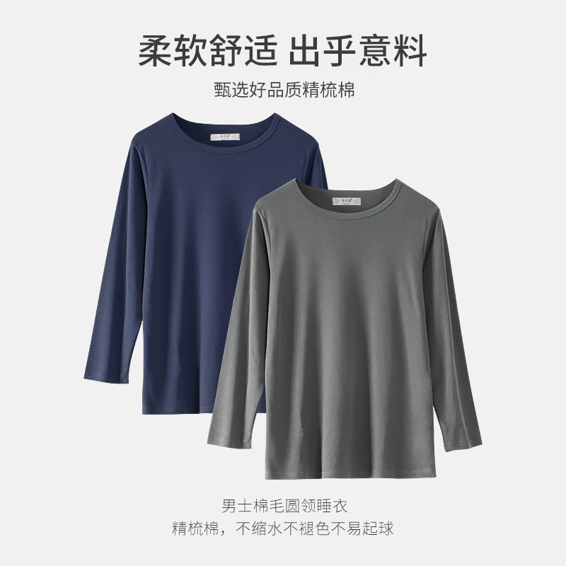 睡衣男士 秋衣居家服 纯棉秋冬内穿保暖上衣中老年圆领长袖