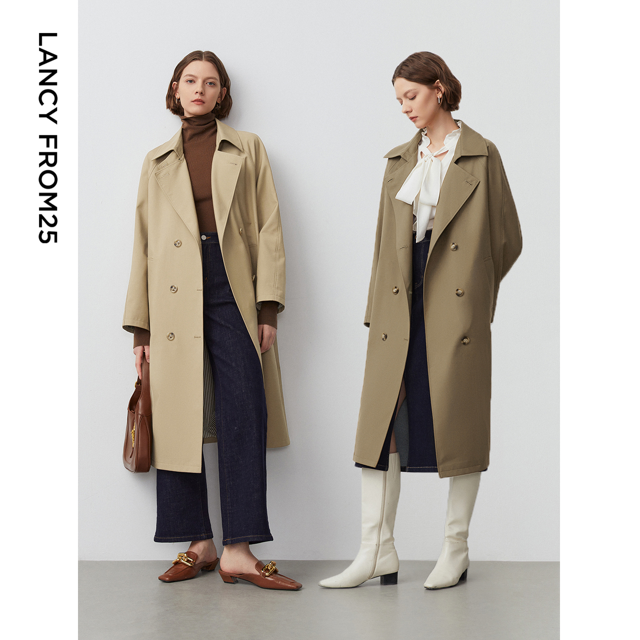KBNE巴恩风卡其色风衣女小个子2025秋冬新款 气质英伦宽松中长外套