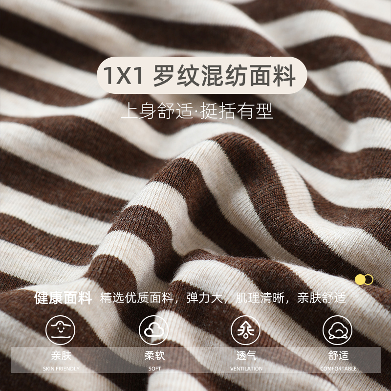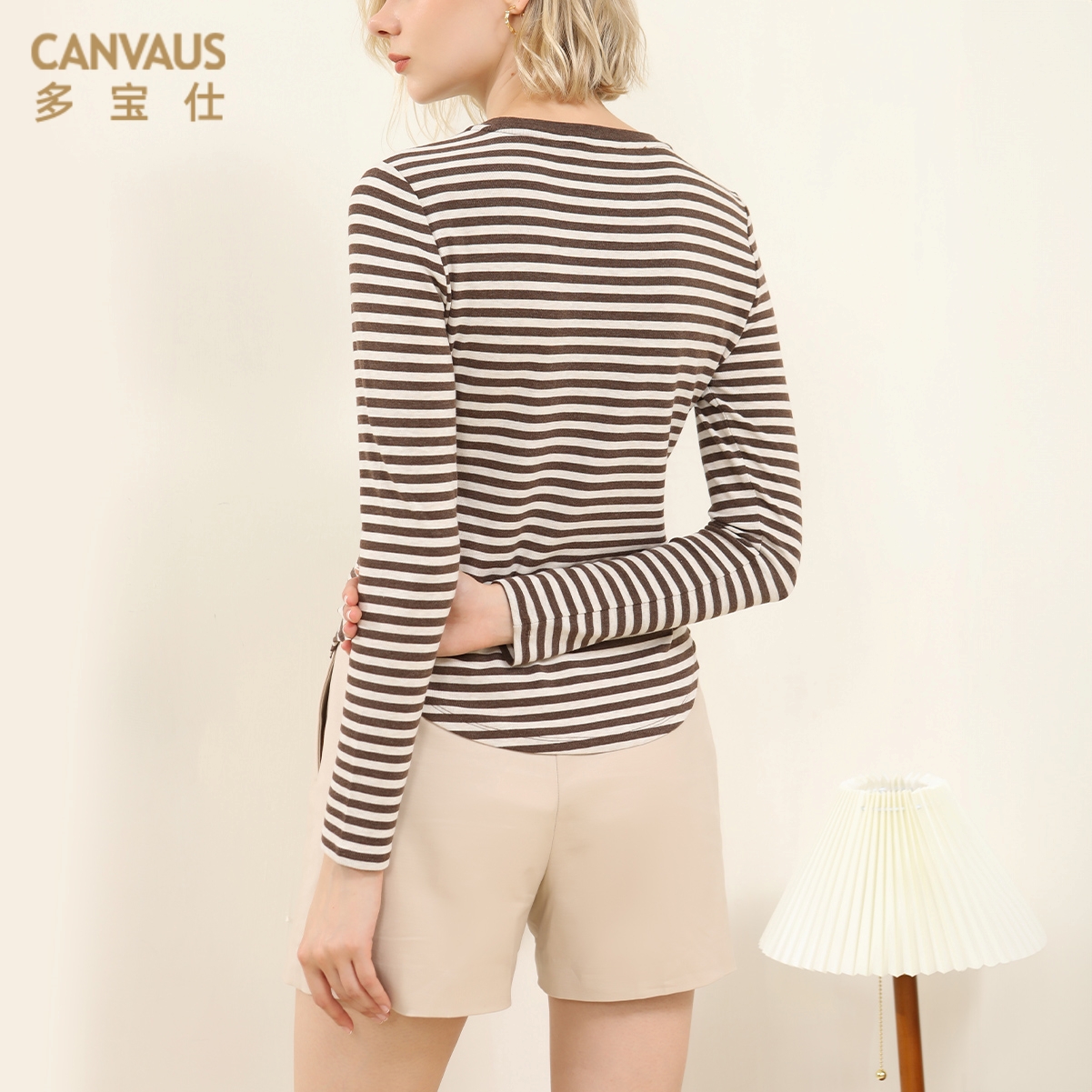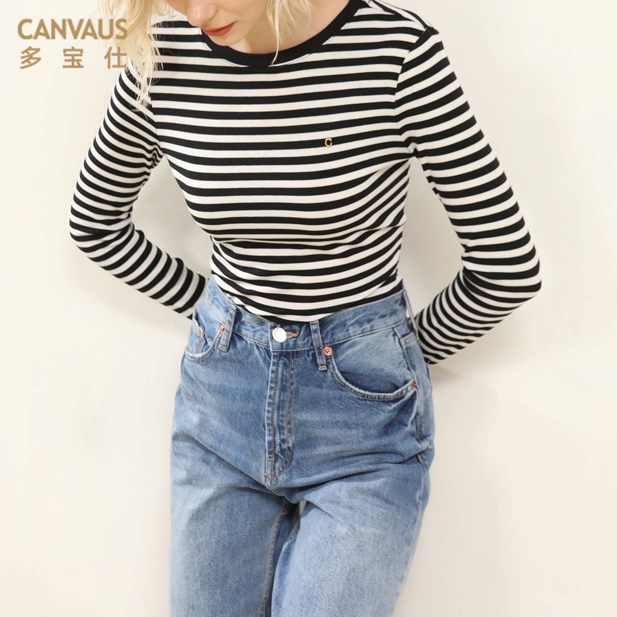 海军风条纹长袖 修身 圆领打底衫 时尚 弹力体恤上衣 女秋季 多宝仕韩版