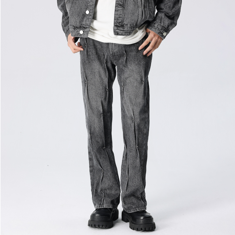 子男款 男生高街vibe潮牌裤 直筒痞帅百搭学生 黑色微喇牛仔裤 美式