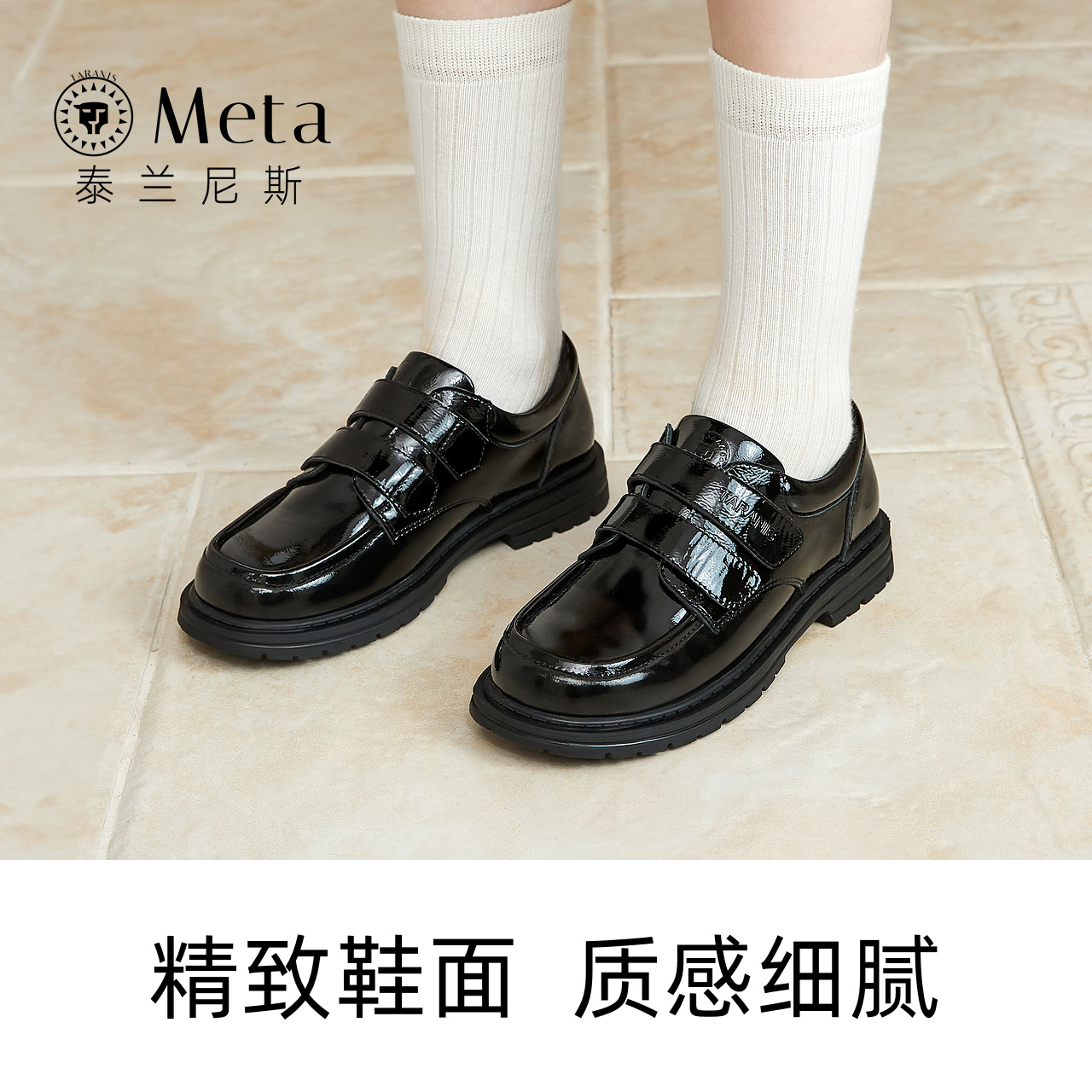 中大童哑光表演鞋 泰兰尼斯meta春秋女童皮鞋 儿童演出亮面小黑鞋