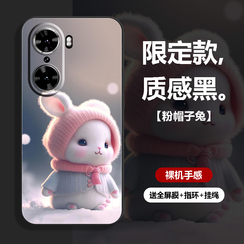 适用华为荣耀60手机壳畅玩六十保护套曲面屏Honor防摔全包软超薄情侣新款 网红男液态硅胶女简约卡通萌兔