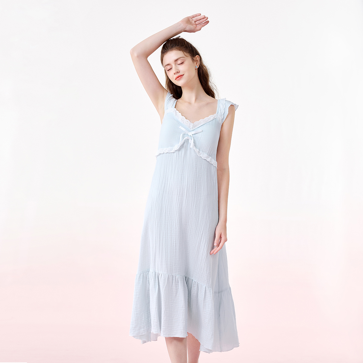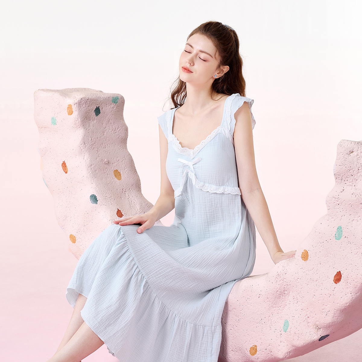 纯棉睡裙女夏季 带胸垫一体性感纱布睡衣女士纯欲吊带棉纱2025新款