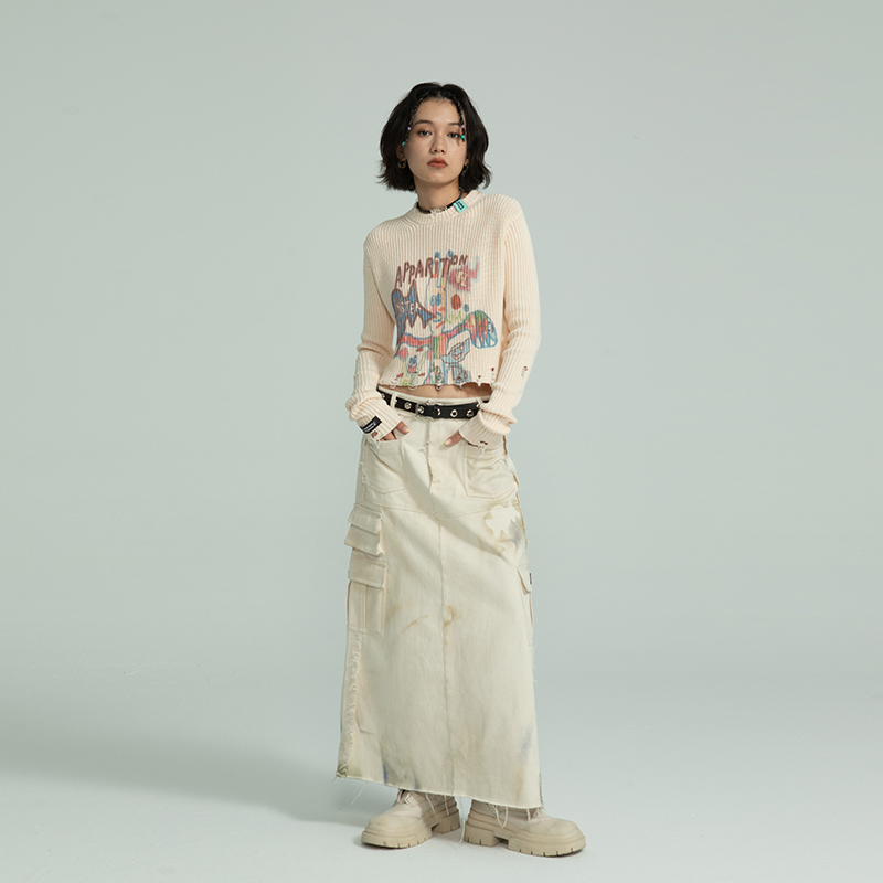 针织衫 APPARITION 圆领套头毛衫 手工破洞 插画印花