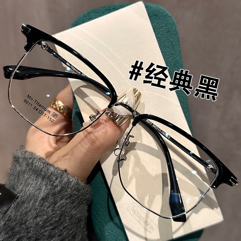 加大加宽155mm高级感半框眼镜男款 可配有度数近视镜片斯文理工男