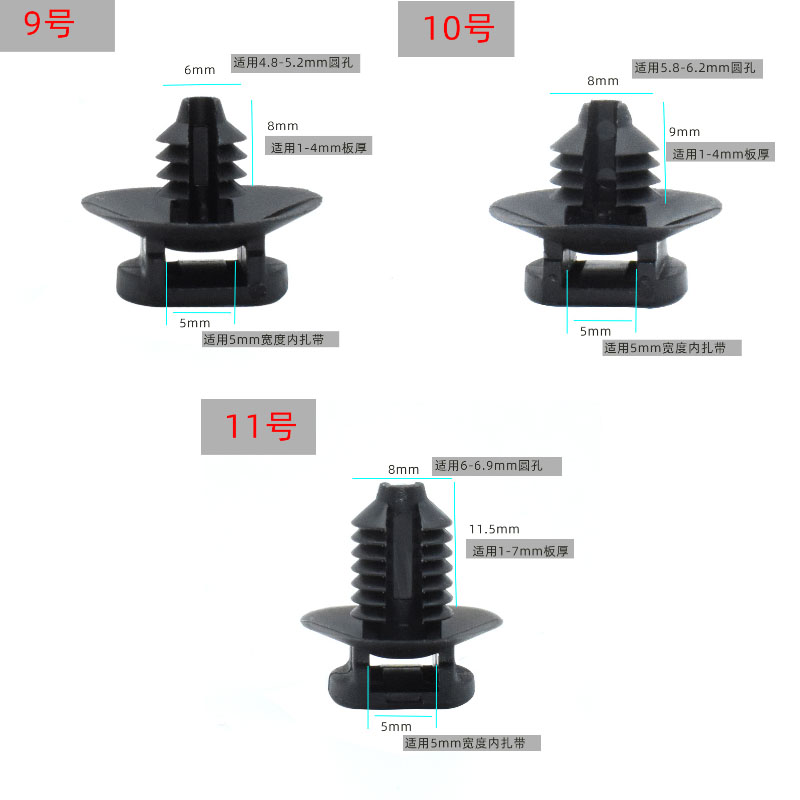 汽车可拆式 插销卡扣钣金孔线束扎带底座杉树固定头卡扣M6螺纹头