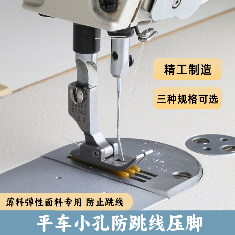 电脑平车防跳线压脚车针织薄料弹性面料拼缝平整专用小孔针眼压脚