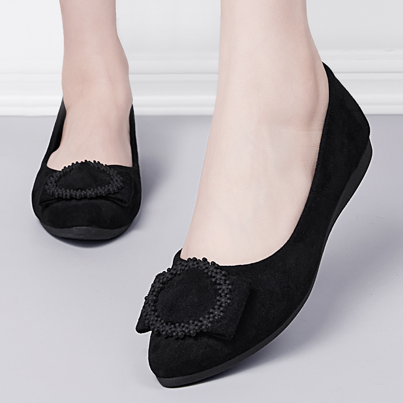 平底久站不累软底黑色工作鞋 品牌纯黑舒适豆豆鞋 女新款 老北京布鞋