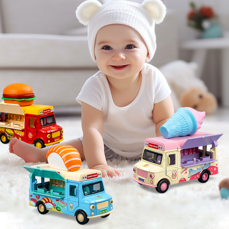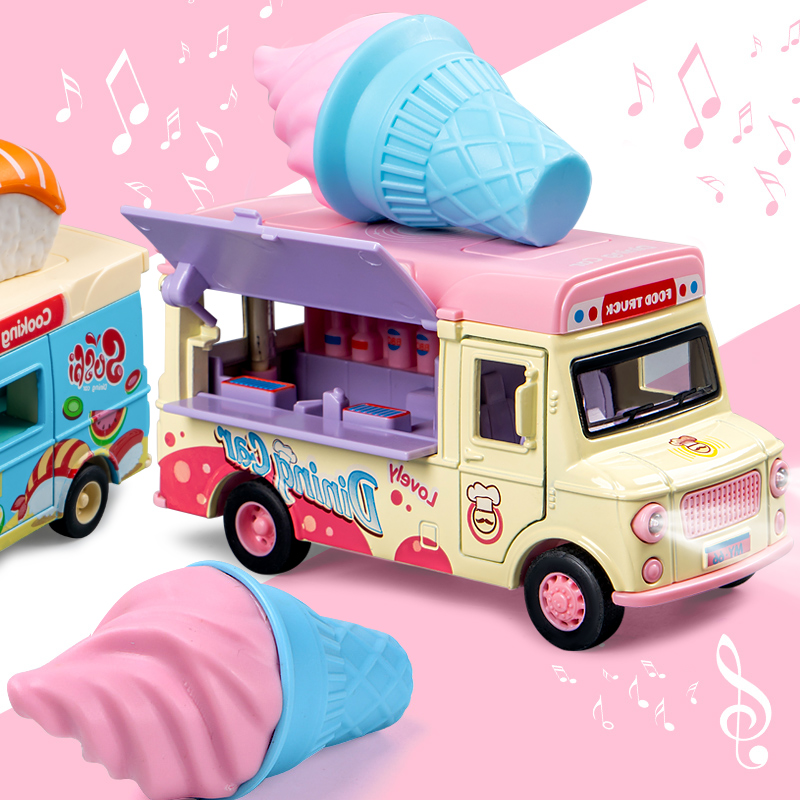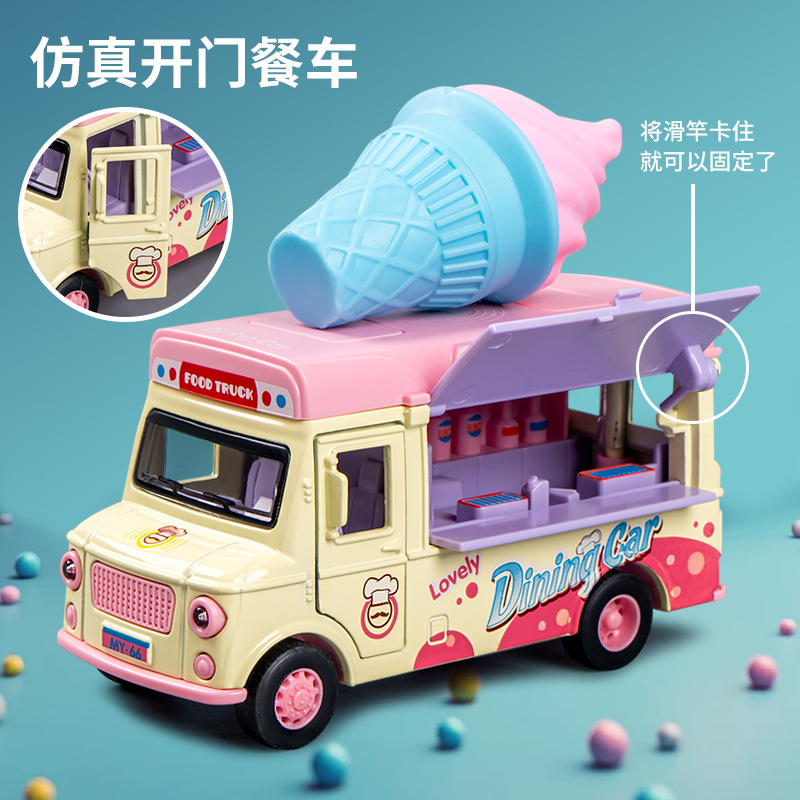 儿童冰淇淋玩具车 女孩汉堡雪糕餐车合金厨房惯性汽车巴士过家家
