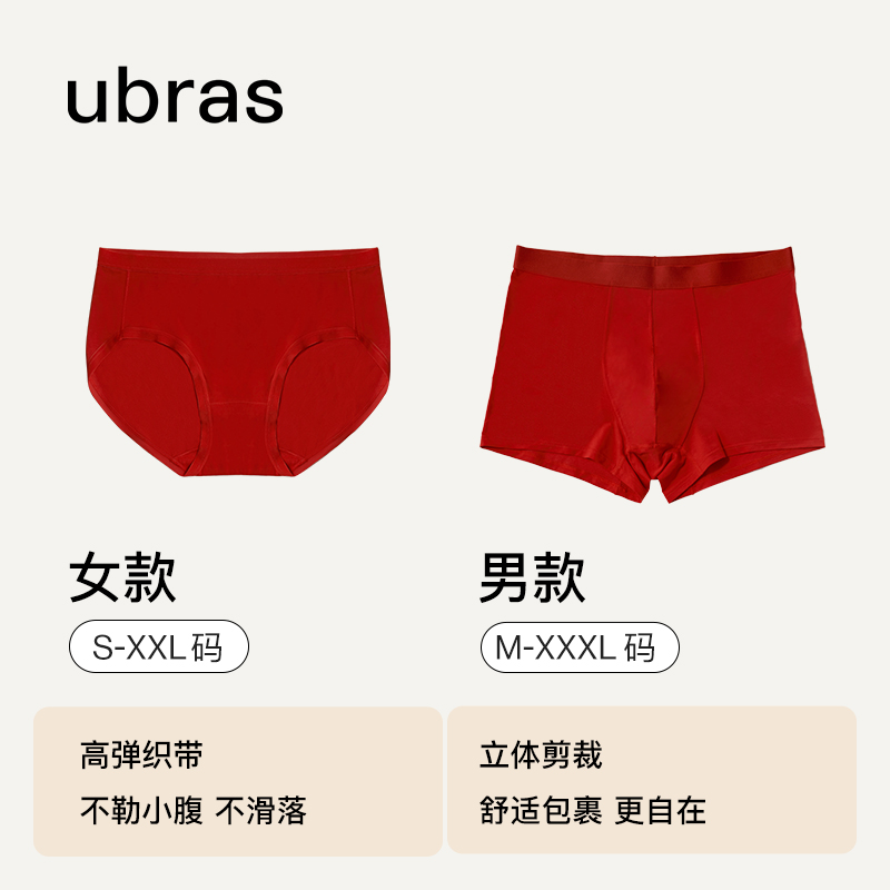 ubras穿红系列结婚红色 60S兰精莫代尔情侣男女内裤