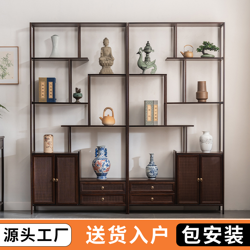博古架新中式 饰茶架 背景隔断茶柜置物架茶叶架展示柜非实木摆件装