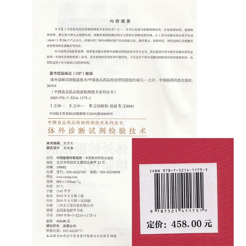 实验室书籍 中国食品药品检定研究院 体外诊断试剂检验技术 中国食品药品检验检测技术系列丛书