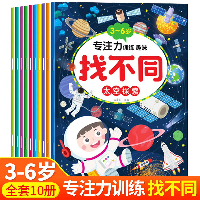 智力开发动脑阅读找不同数学思维训练 6岁大脑开发益智早教书籍逻辑提高观察力注意力训练找茬游戏 全10册专注力训练趣味找不同