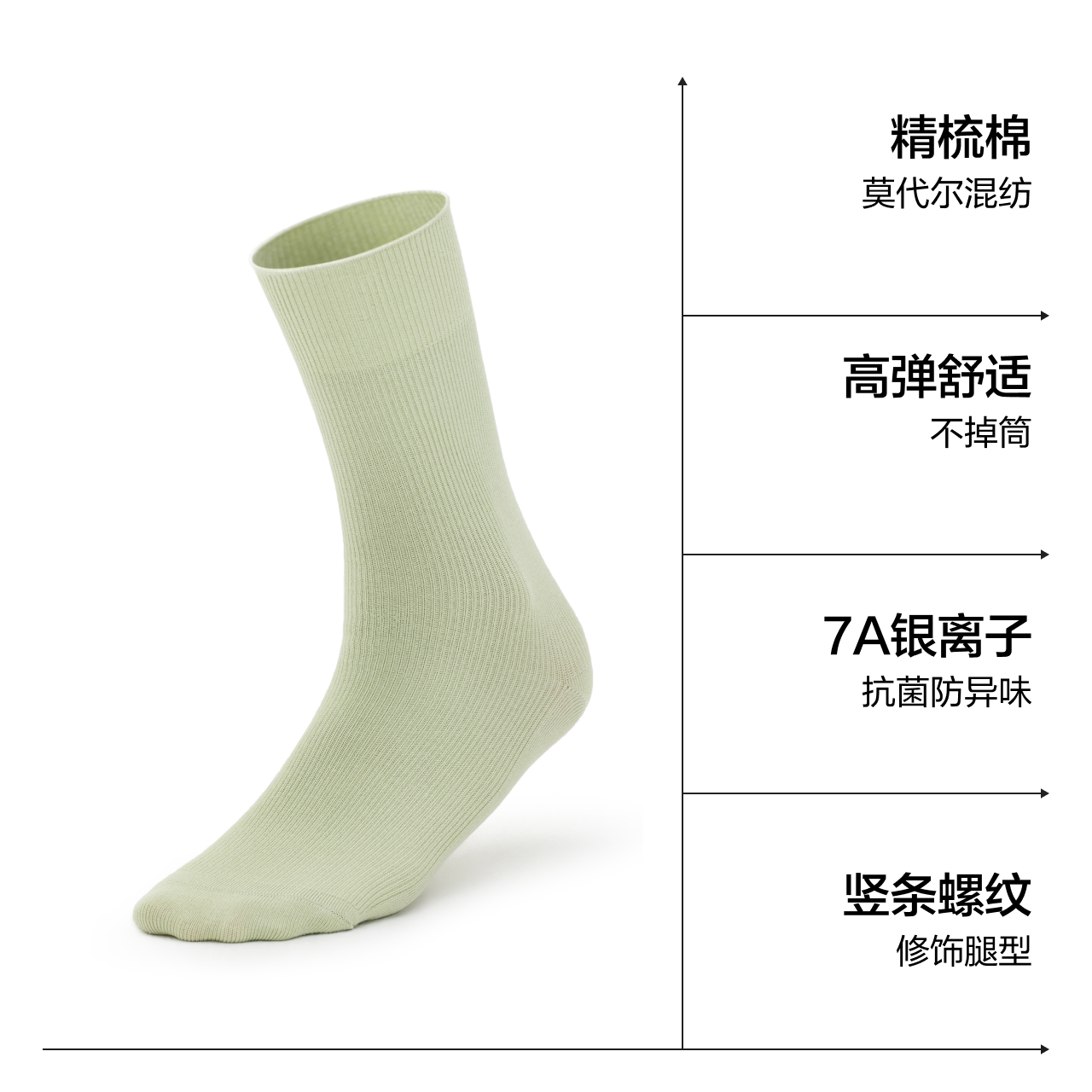 7A抗菌 蕉内银皮511S女士长袜吸汗防臭运动袜子白色堆堆袜月子袜