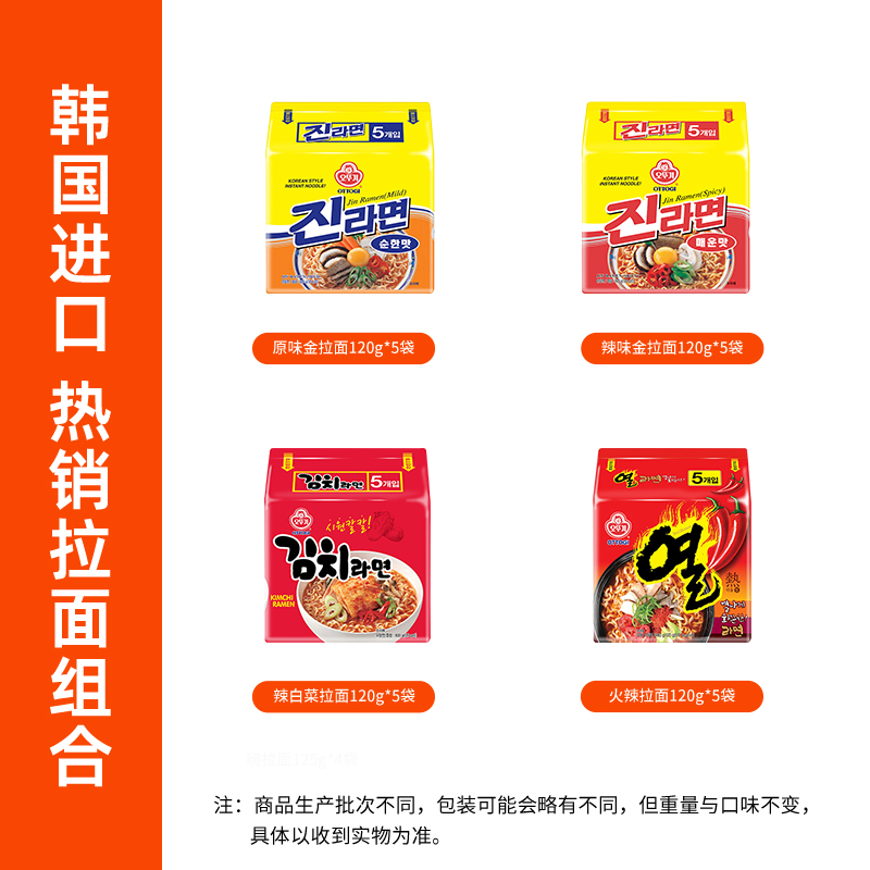 韩国进口食品不倒翁金拉面原味辣味火热拉面方便面汤面速食面袋装
