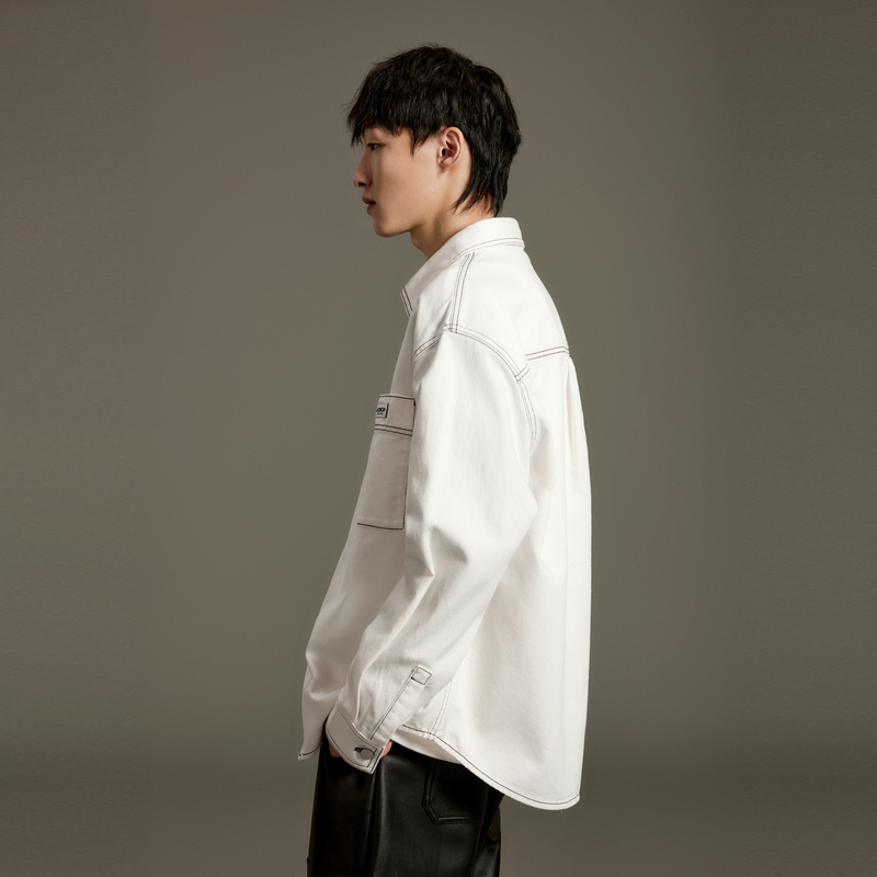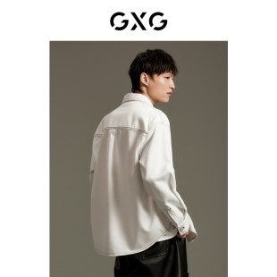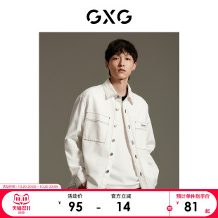 GEX1E913363 外套 GXG男装 白色牛仔简约黑色明线撞色衬衫