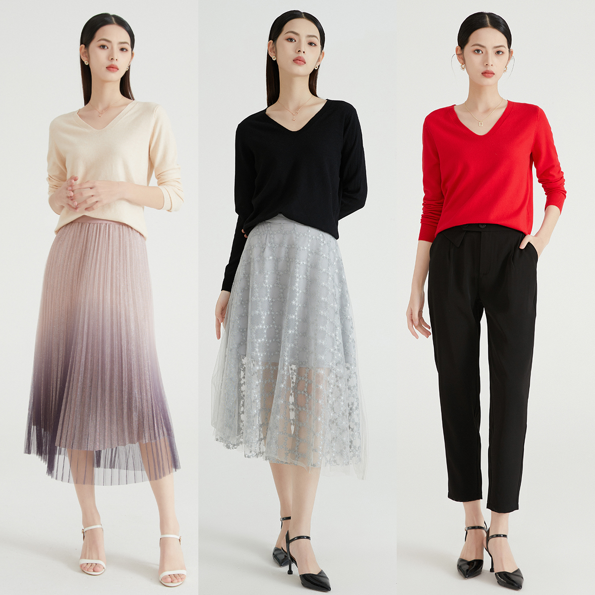 上衣气质百搭时尚 马天奴女装 毛衫 针织衫 基础打底 春秋红色V领长袖