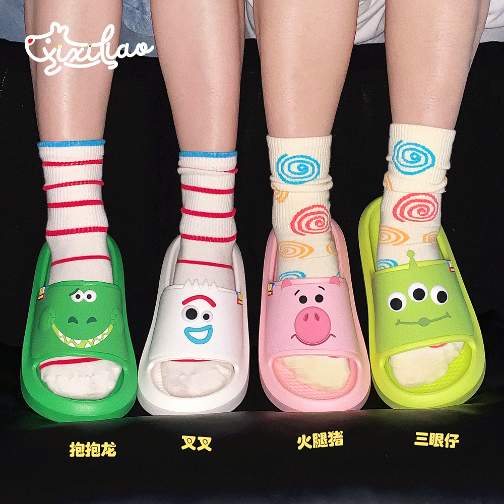 男女夏季 情侣玩具总动员草莓熊三眼仔凉拖鞋 软底EVA防滑家用拖鞋