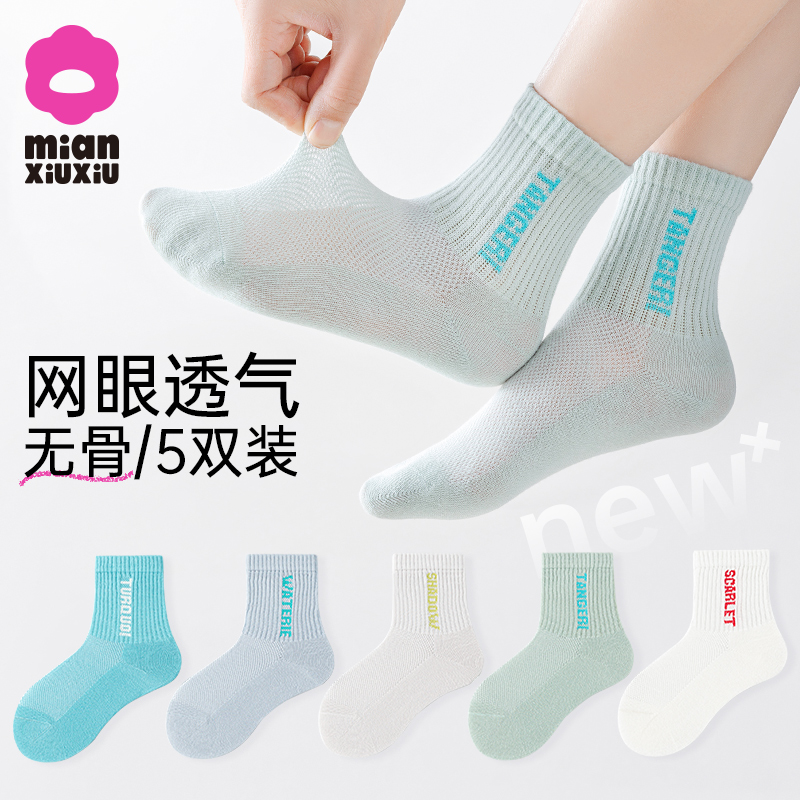 棉袜 纯棉学生透气网眼潮袜中大童男孩宝宝春夏款 男童袜子夏季 薄款