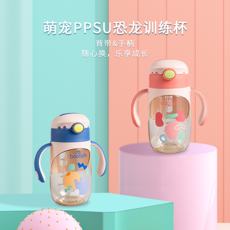 安儿欣PPSU幼儿园吸管杯训练杯宝宝学饮杯婴儿防摔重力球儿童水杯