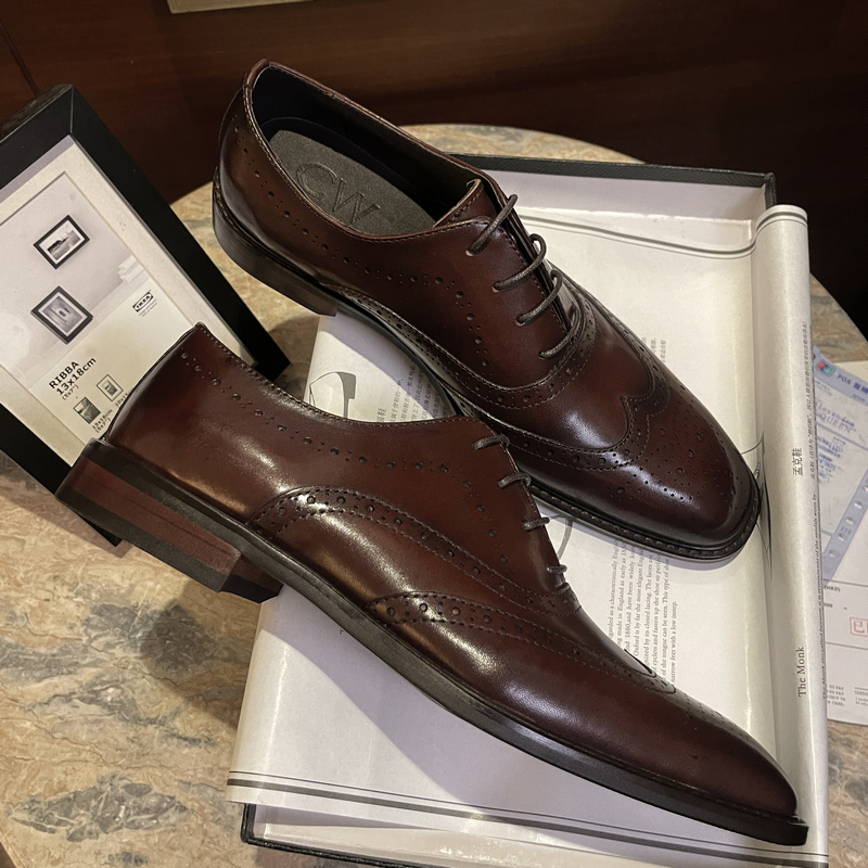 商务休闲英伦婚鞋 高端2025牛津鞋 正装 真皮鞋 雕花布洛克棕色 男鞋