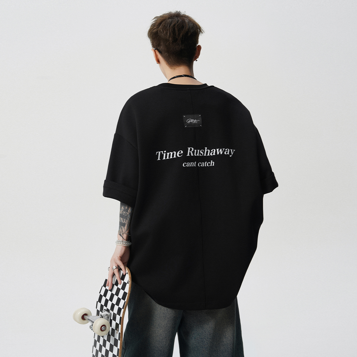 t恤男2025秋季 复古宽松半袖 新款 美式 体恤 重磅潮牌五分袖 V37短袖