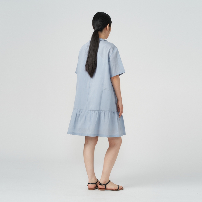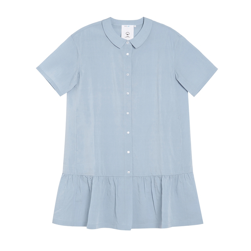 领A字微落肩裙2025夏季 Eland衣恋牛仔连衣裙女衬衫 新款 100%棉