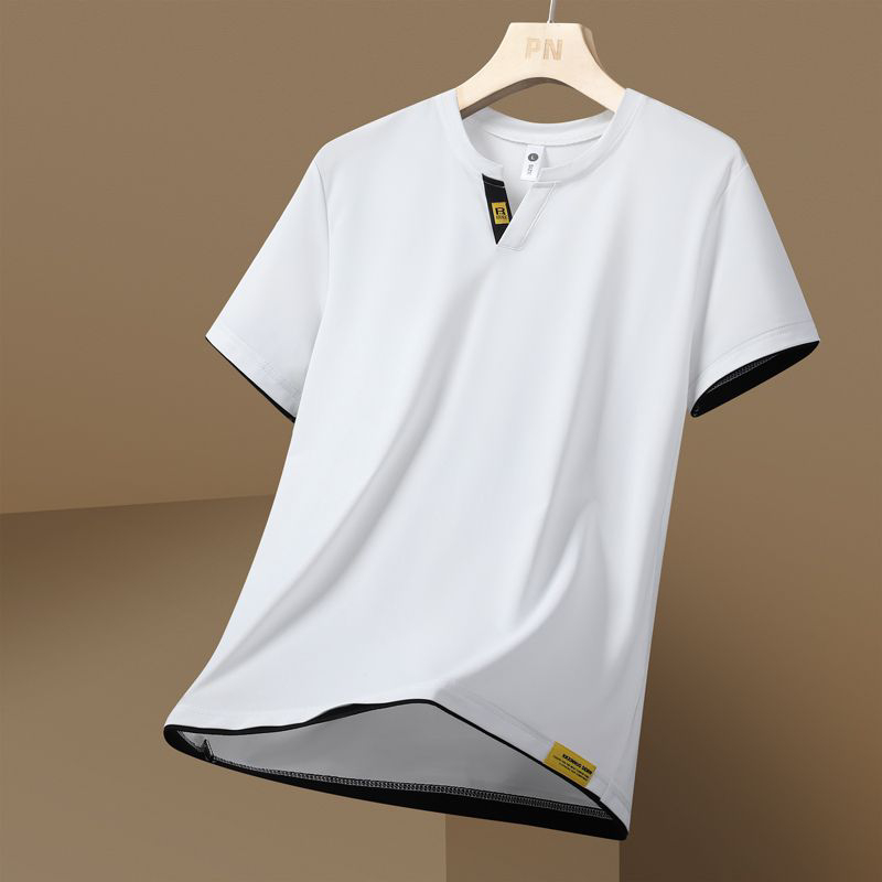 t恤男士 半袖 夏季 运动健身高弹速干V领宽松大码 上衣服 新款 冰丝短袖