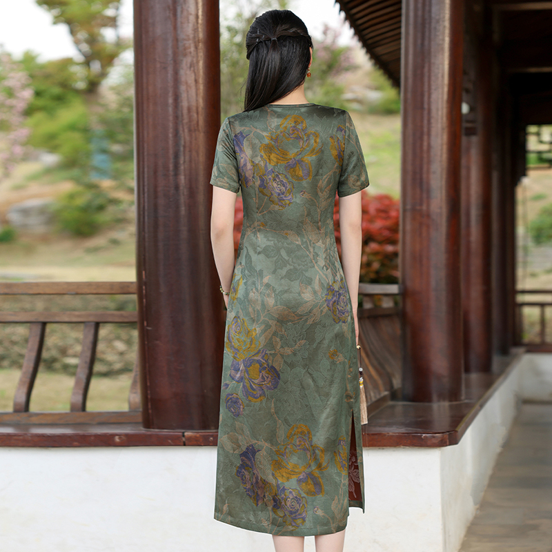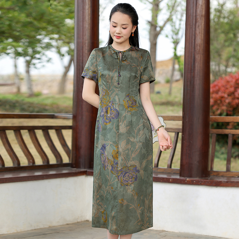 休闲中长款 棉绸连衣裙女人造棉外穿时尚 改良旗袍裙子 新款 2025夏季