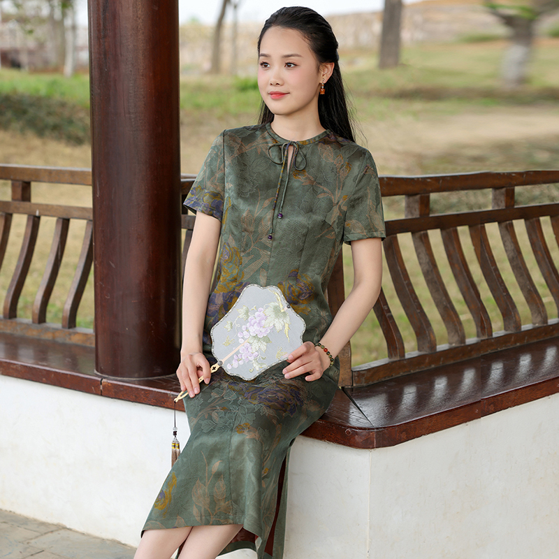 如意风奥黛新中式 改良旗袍女收腰显瘦日常中国风高端连衣裙23R159