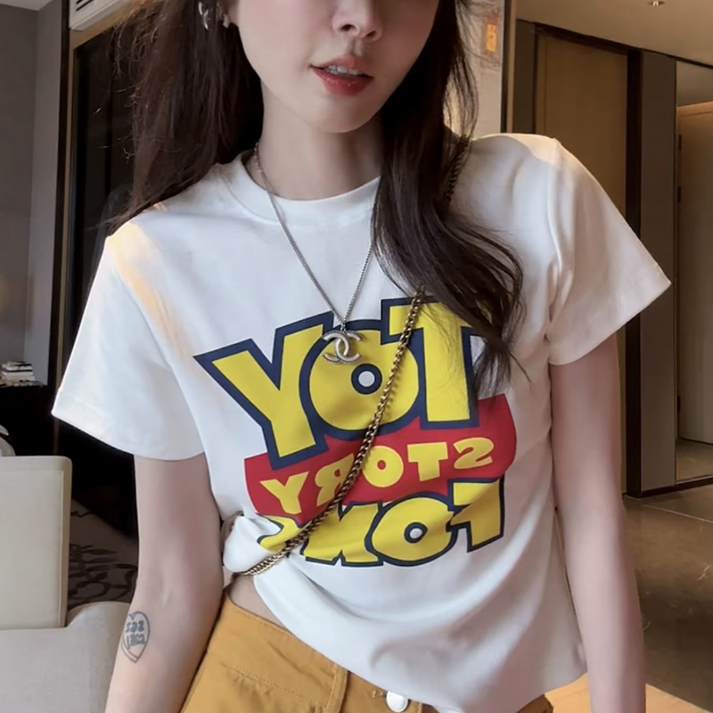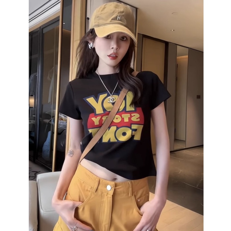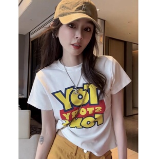 字母印花短袖 修身 t恤女2025夏季 洋气质圆领短款 显瘦上衣 新款 时尚