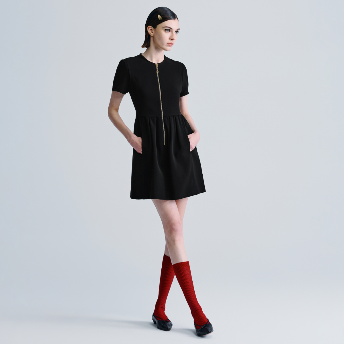 女士裙子2025夏Q3 连衣裙短款 2066 A字圆领短袖 HAVVA简约气质修身