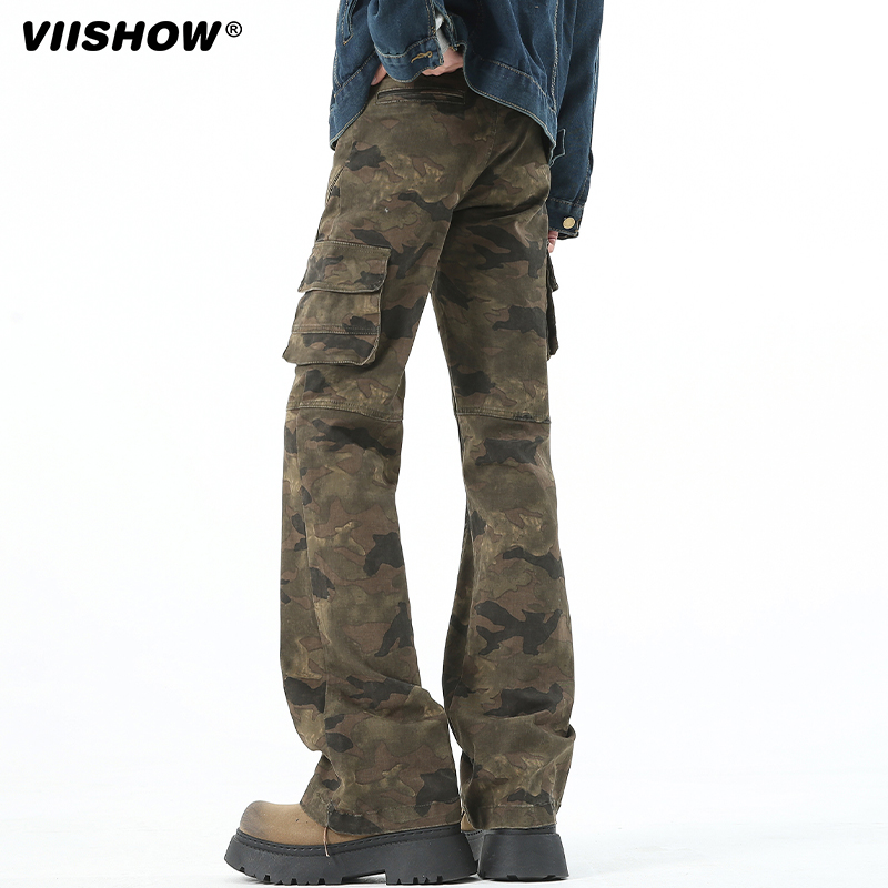 迷彩裤 潮牌工装 裤 VIISHOW夏季 高挑百搭长裤 美式 男喇叭裤 子男 新款