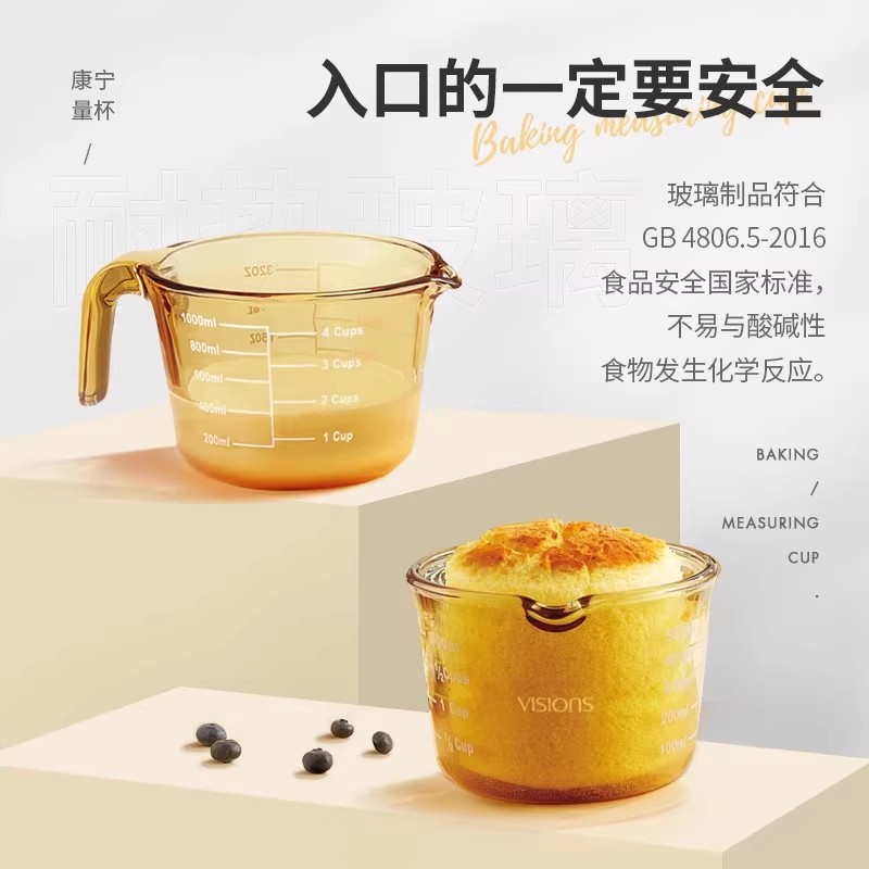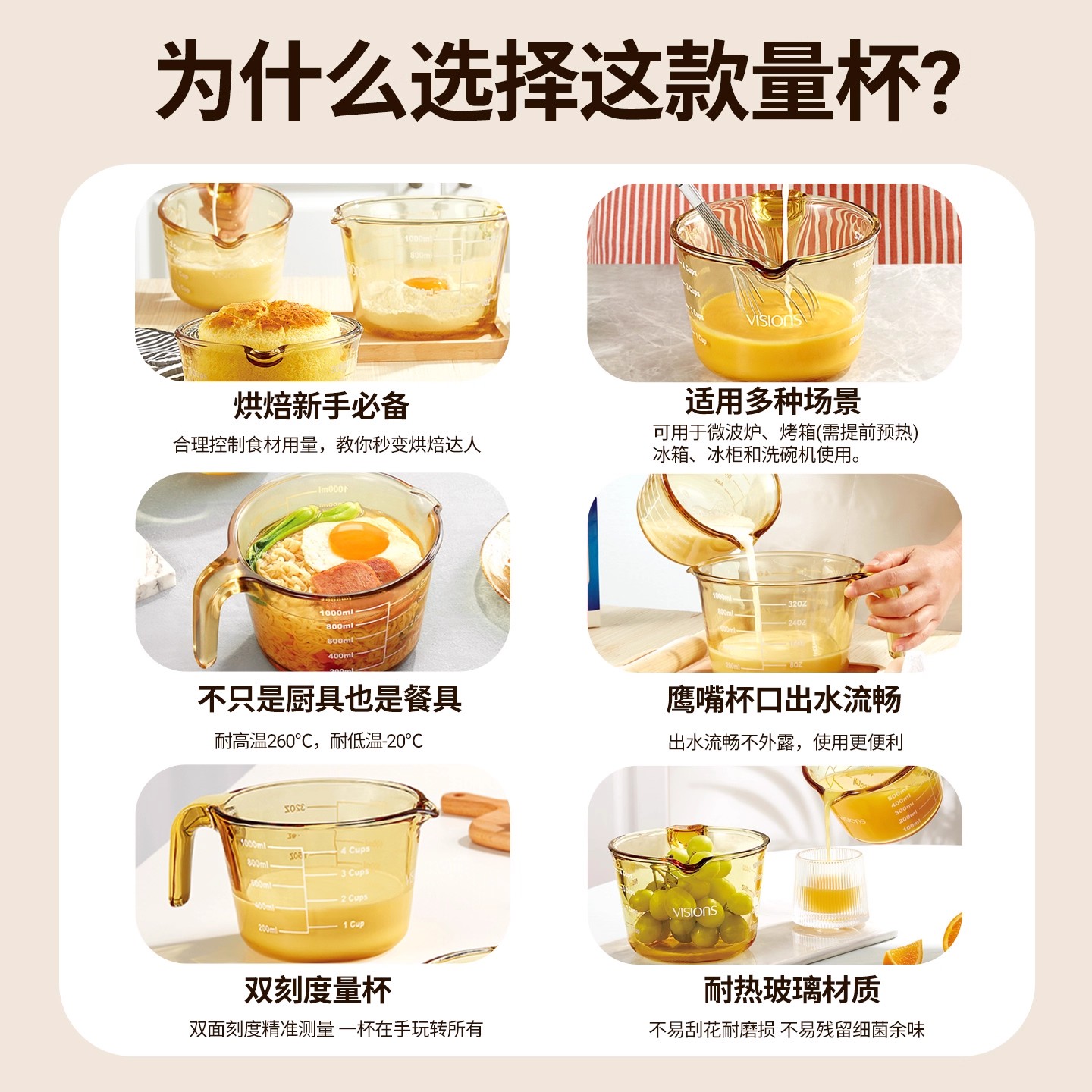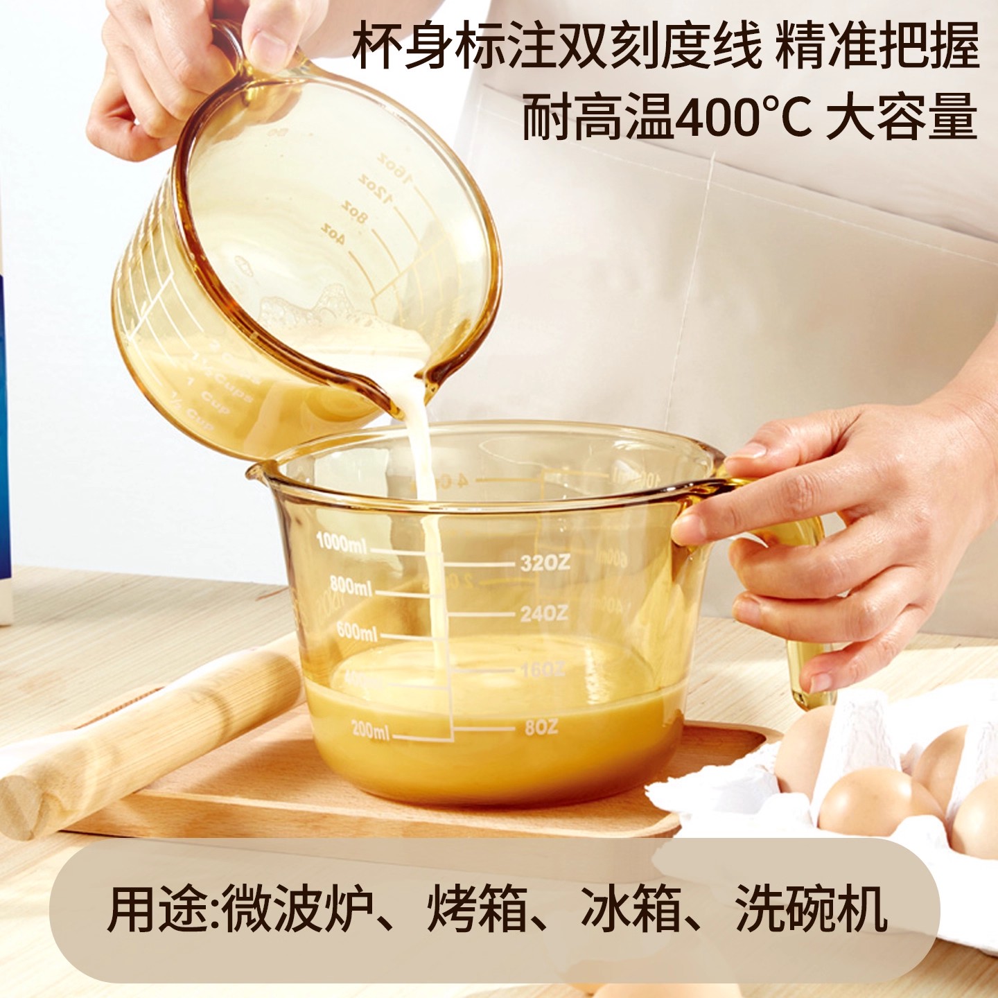 康宁玻璃牛奶杯耐高温琥珀色早餐杯玻璃量杯带刻度 蜂狂双十一