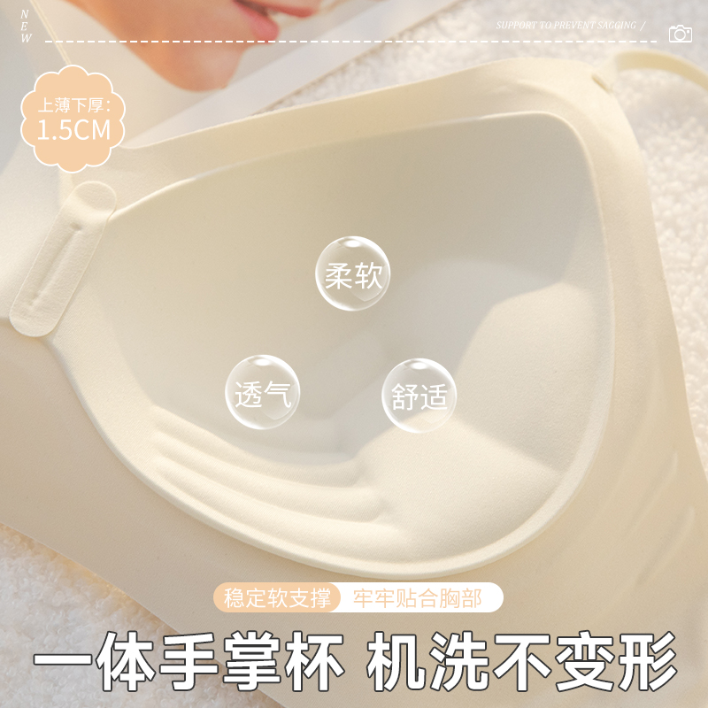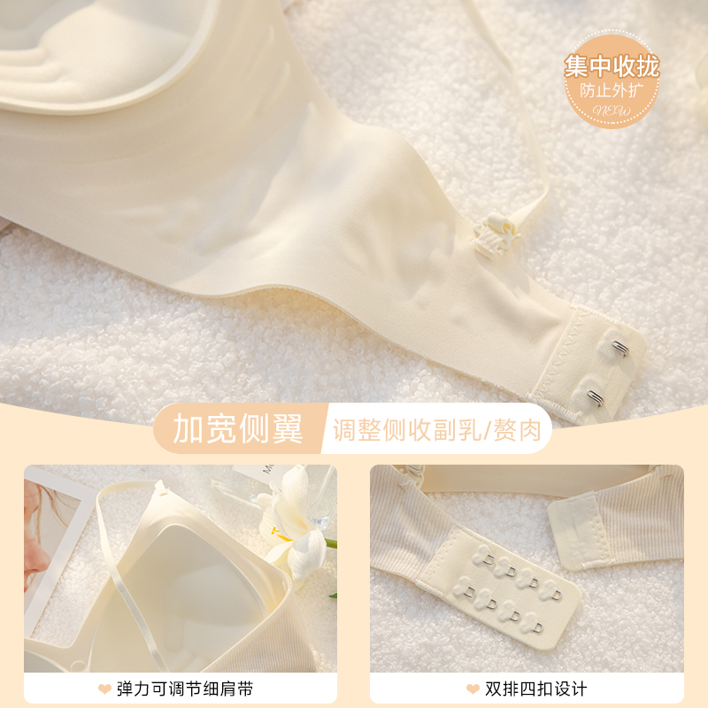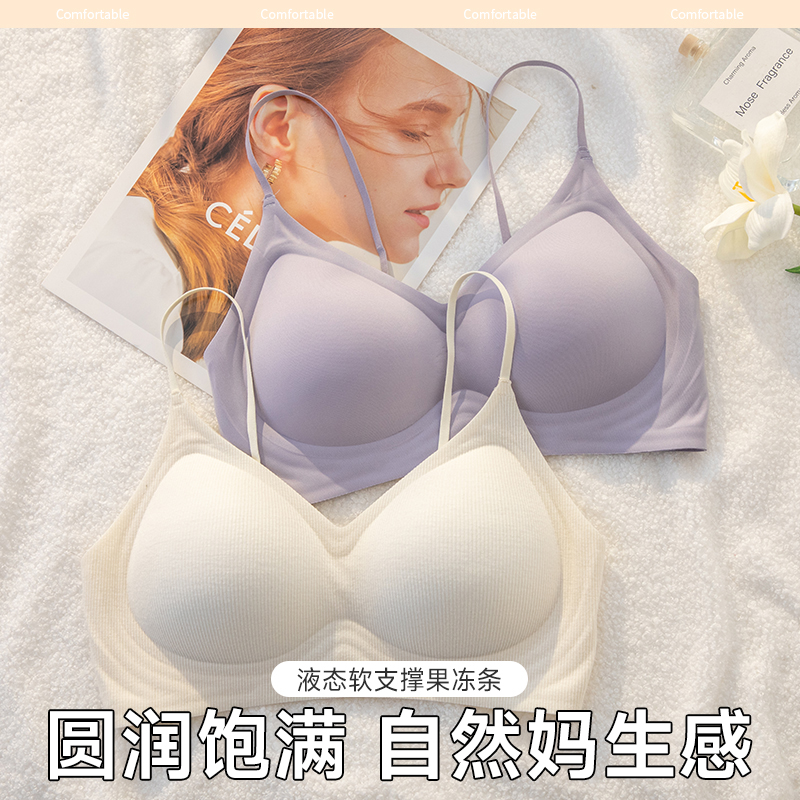 妈生感无痕内衣女小胸显大固定一体杯细肩带吊带文胸罩聚拢防下垂