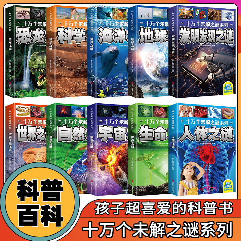 百科全书十万个为什么 中小学生科普人体自然海洋地球宇宙动物科学恐龙人类之谜中国未解之谜青少年版 正版 十万个未解之谜全套10册