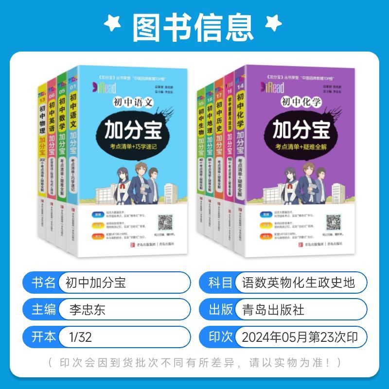 2025新版 加分宝初中全套语文古诗文言文数学英语物理化学政治历史地理生物小四门知识手册七年级八年级九年级口袋书掌中宝速记手册