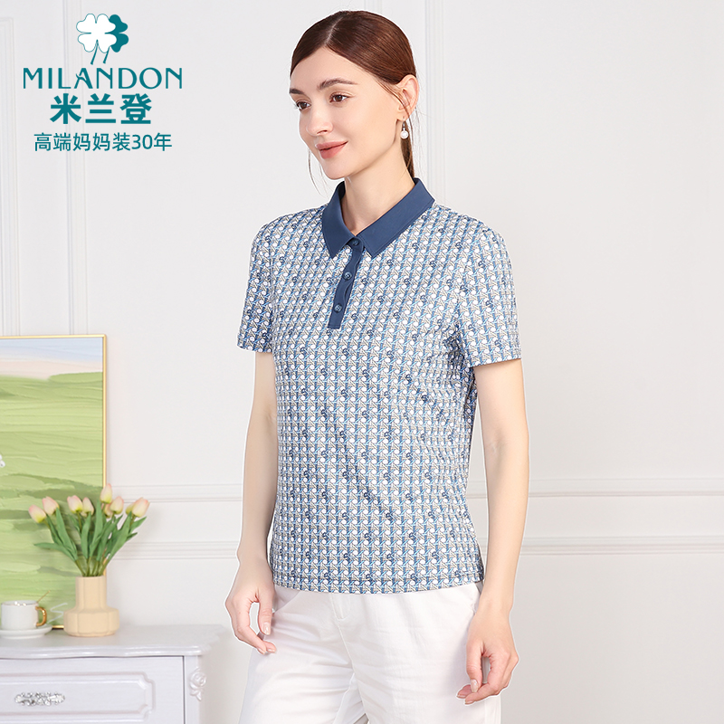 polo领针织T恤衫 米兰登中老年妈妈装 女士印花短袖 新款 2025年夏季