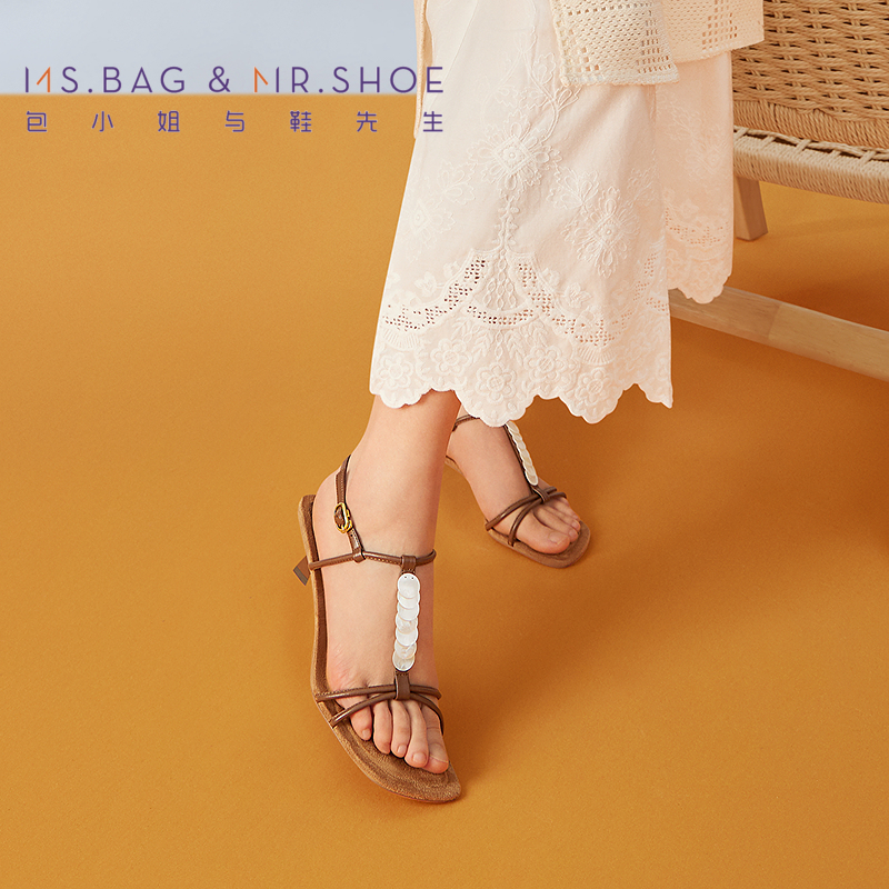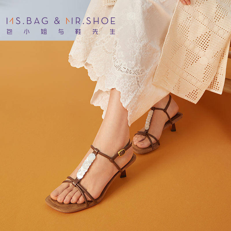 羊皮方头贝母细带粗跟凉鞋 新款 女252463 先生2025年夏季 包小姐与鞋