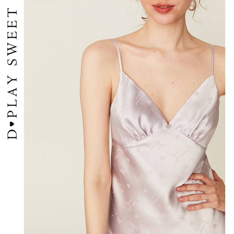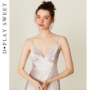 DPLAYSWEET法式 轻奢提花缎面吊带睡裙钻饰睡衣女士2025夏新款