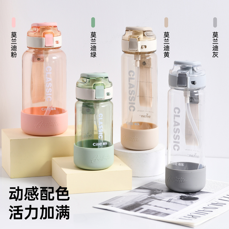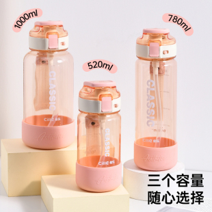 希乐水杯大容量女生高颜值夏季 tritan杯子儿童学生上学专用吸管杯