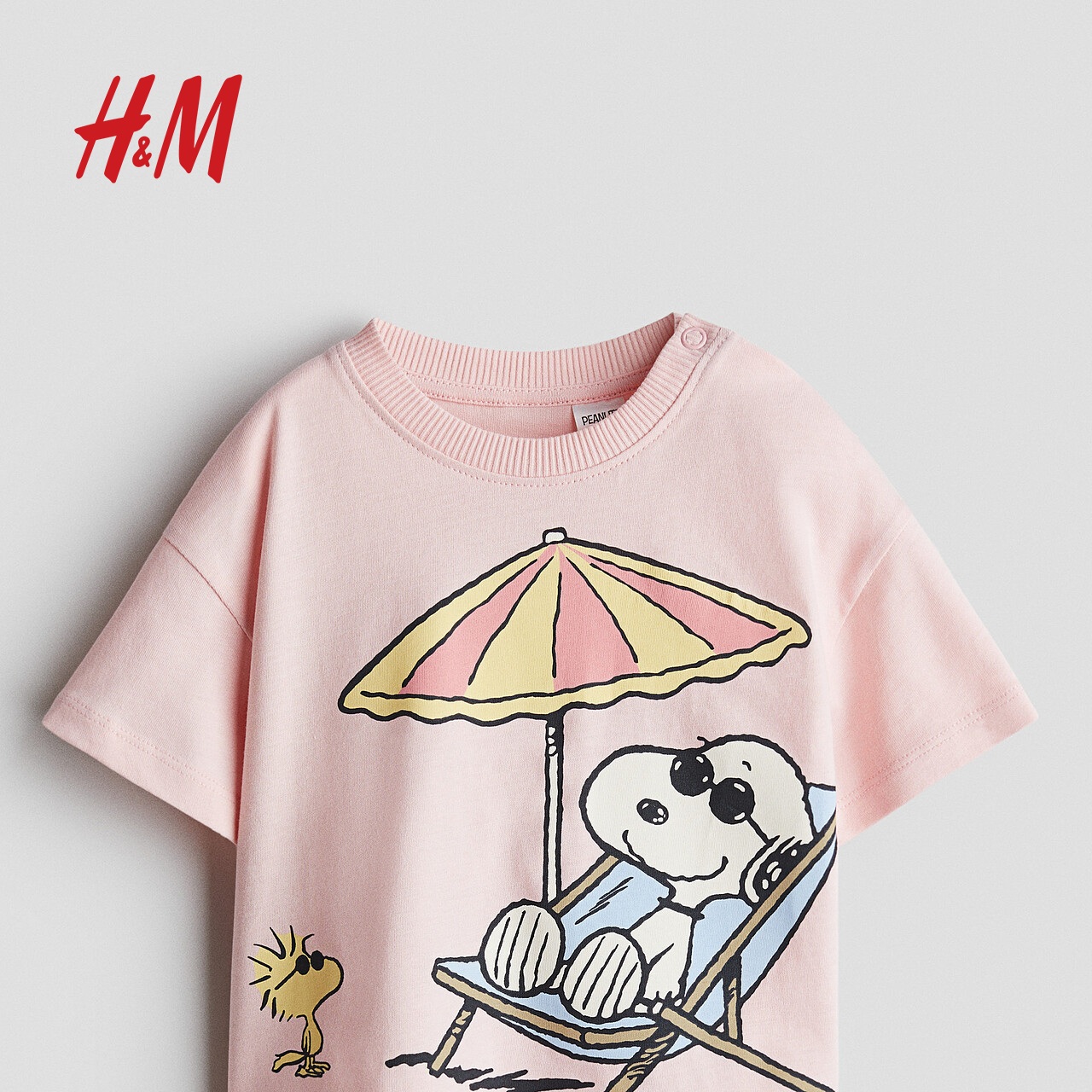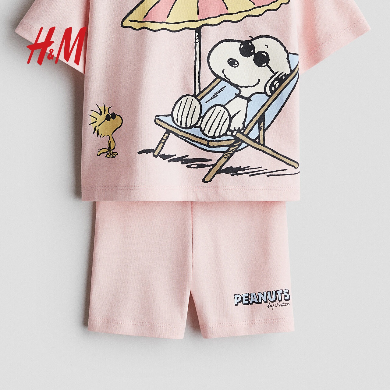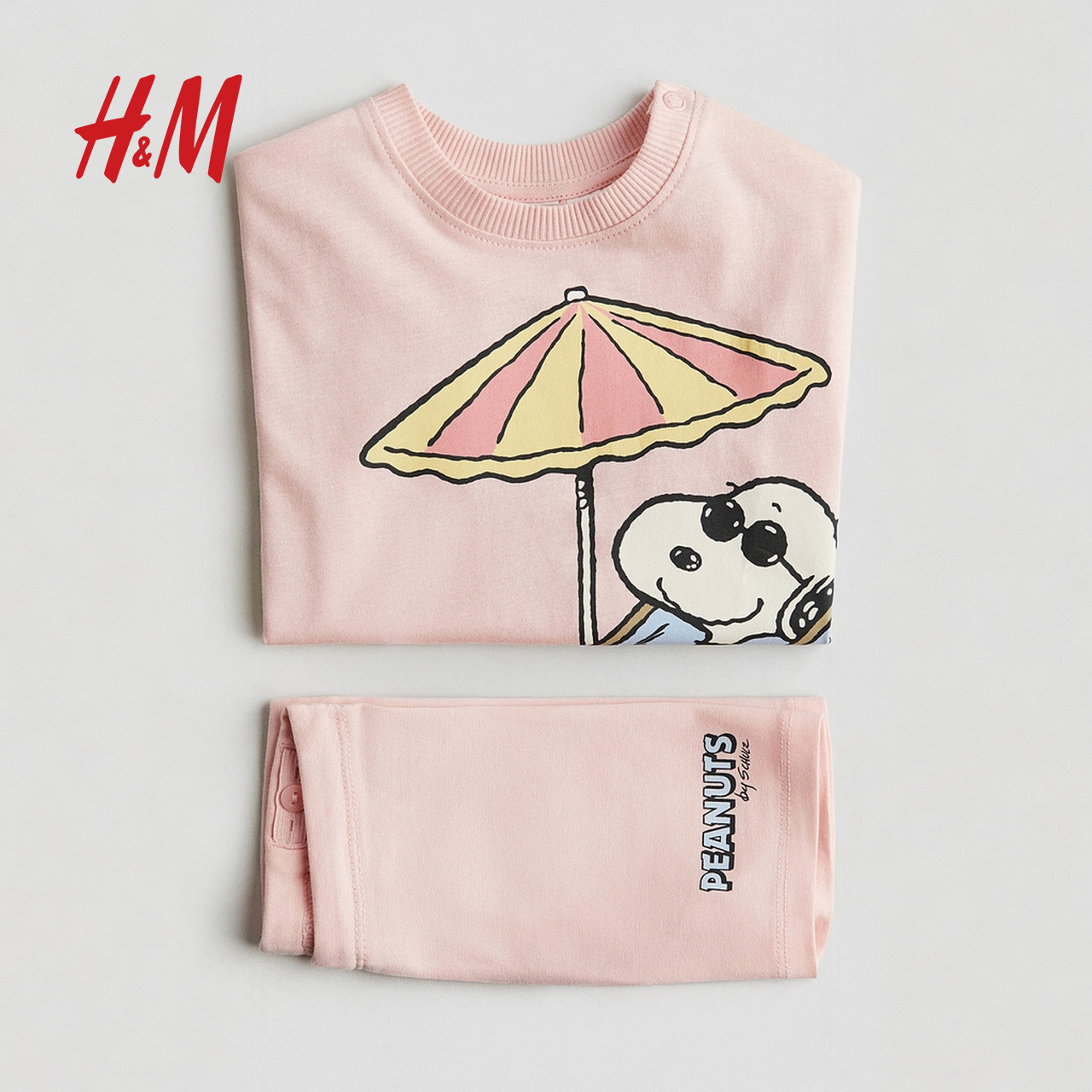 女婴2025秋季 HM童装 新款 2件式 1265913 印花棉质套装 史努比联名