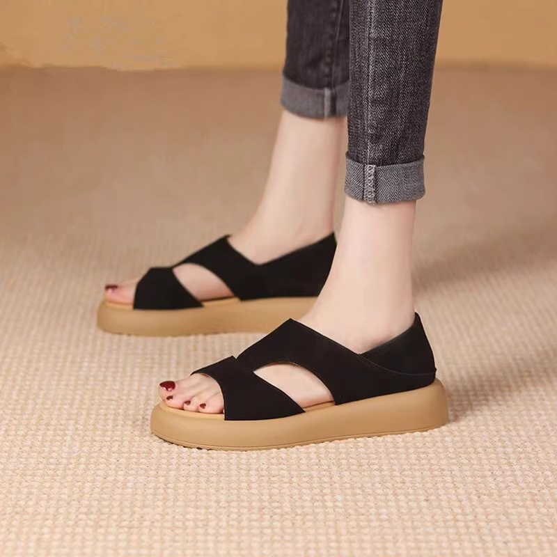 女款 复古百搭厚底罗马鞋 2025年夏季 舒适时尚 新款 超火豹纹露趾凉鞋