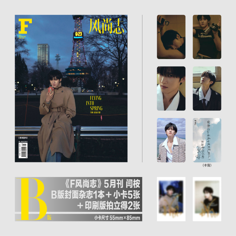 闫桉D版 F风尚志杂志2025年五月 1张明信片 4张印刷版 F风尚志 5月 拍立得 套装 随机拍立得 计入销量 B封面 2张C版 10张小卡