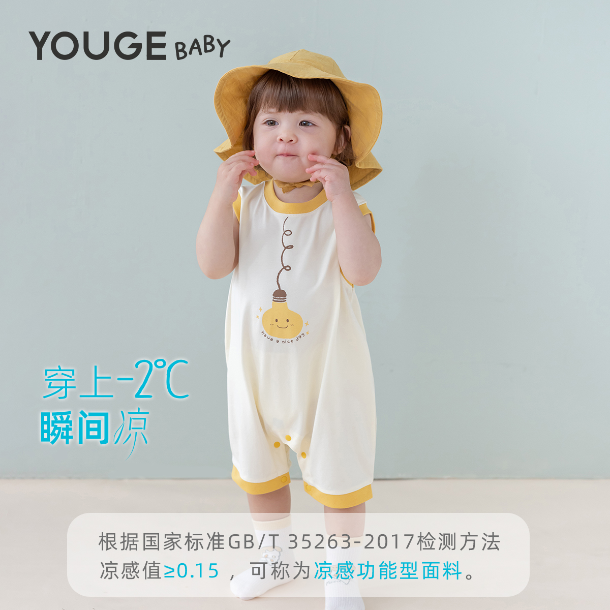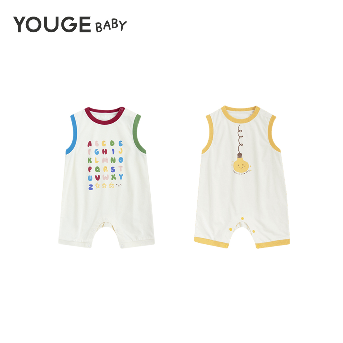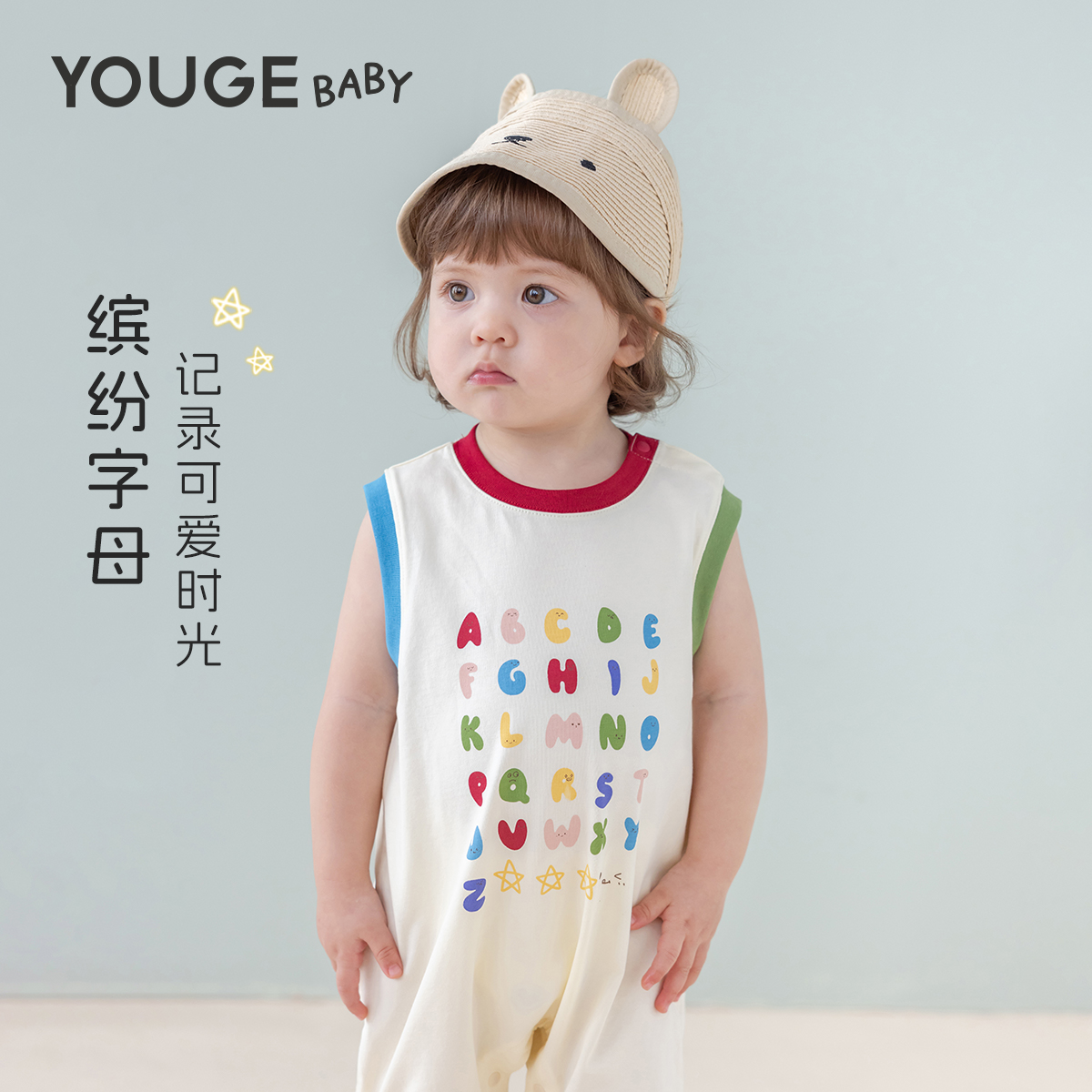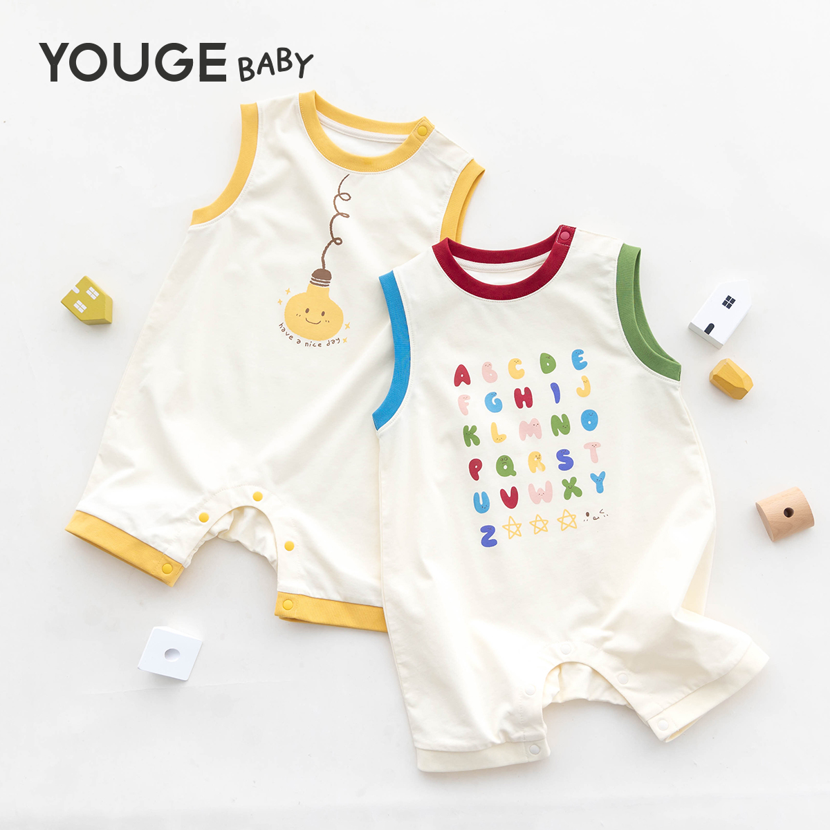 外出爬服时尚 YOUGE幼歌 婴幼儿冰瓷棉卡通无袖 新款 宽松连体衣 夏季