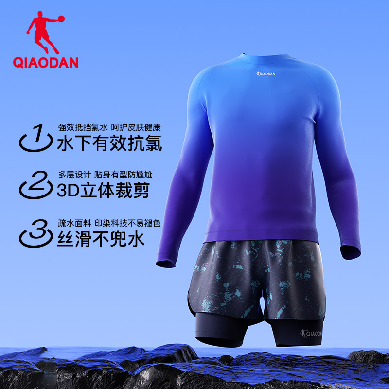 男款 乔丹专业泳衣男士 防晒速干保守遮肚显瘦泳装 分体长袖 2025新款