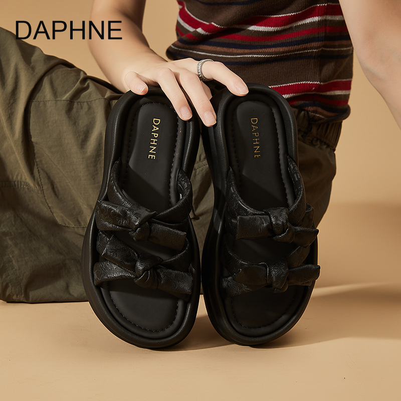 凉鞋 新款 女外穿蝴蝶结配裙子仙女风一字拖 达芙妮2025夏季 Daphne