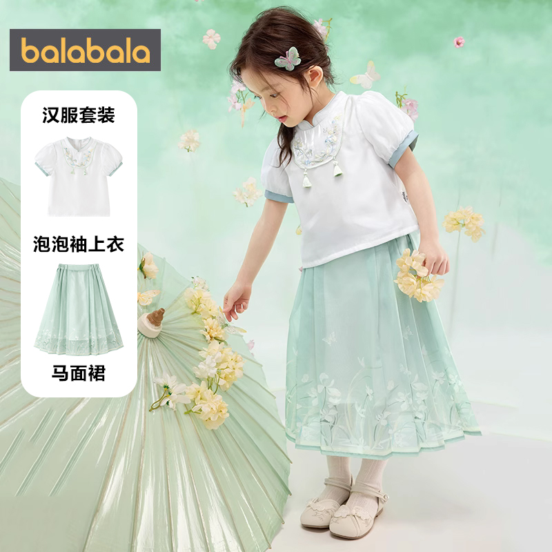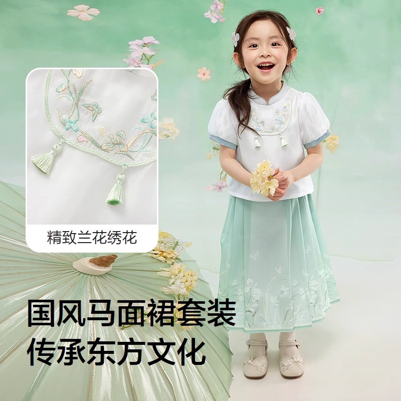 童装 新款 儿童国风两件套 小童宝宝马面裙夏装 巴拉巴拉女童汉服套装